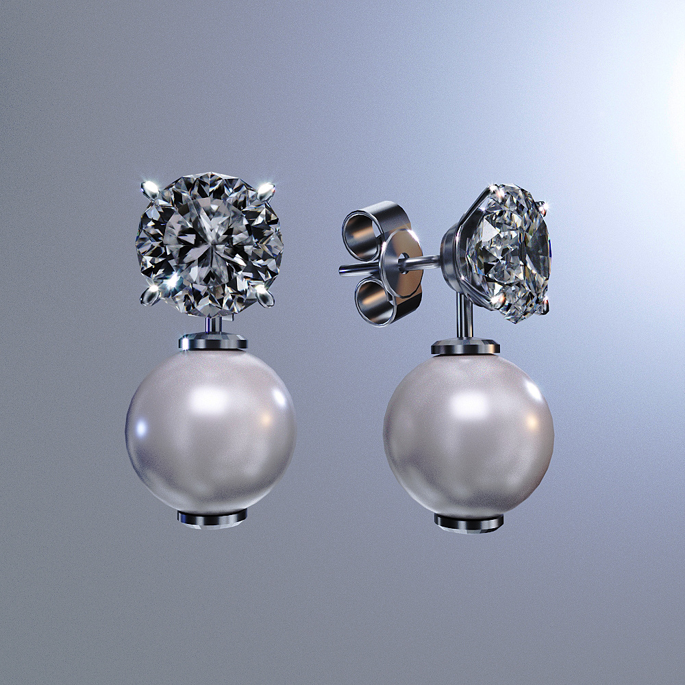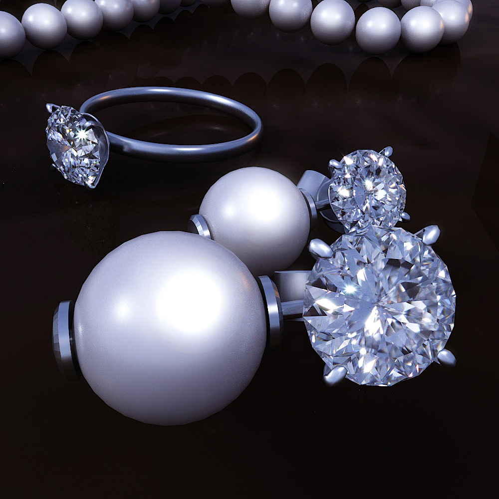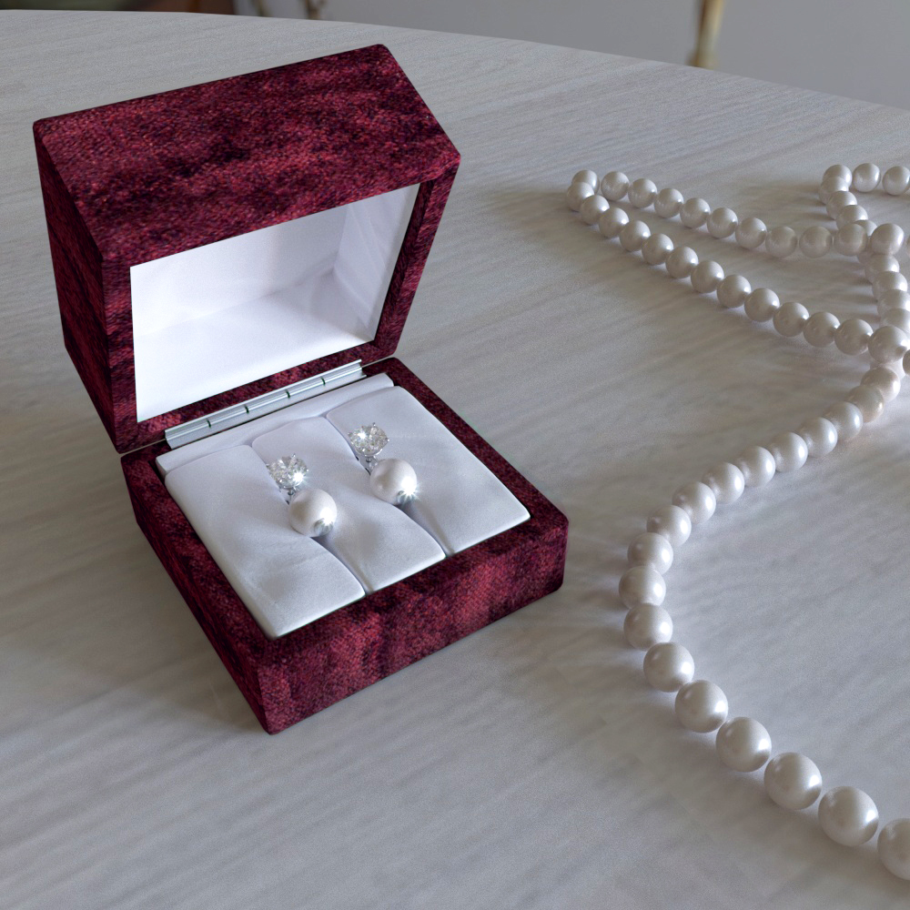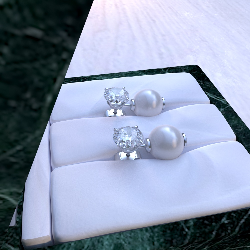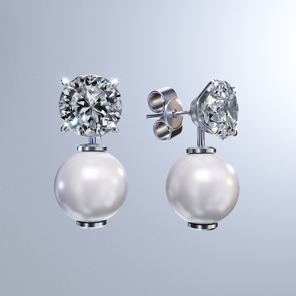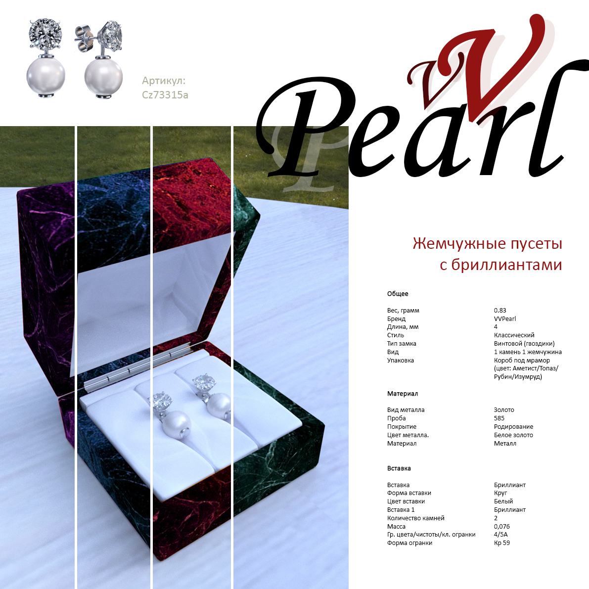 Жемчужные пусеты с бриллиантами. Основа - белое золото. Это пусеты являются частью гарнитура, состоящего из пусетов, кольца и нитки жемчуга.