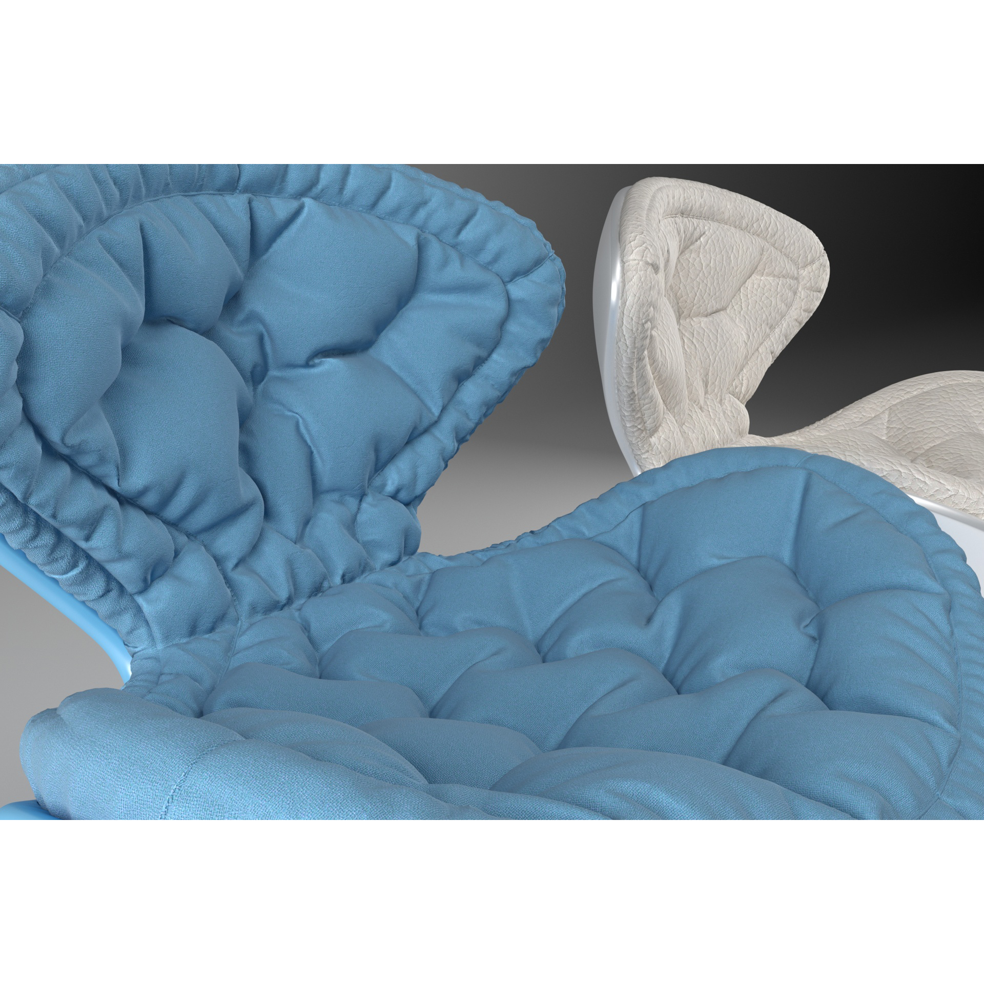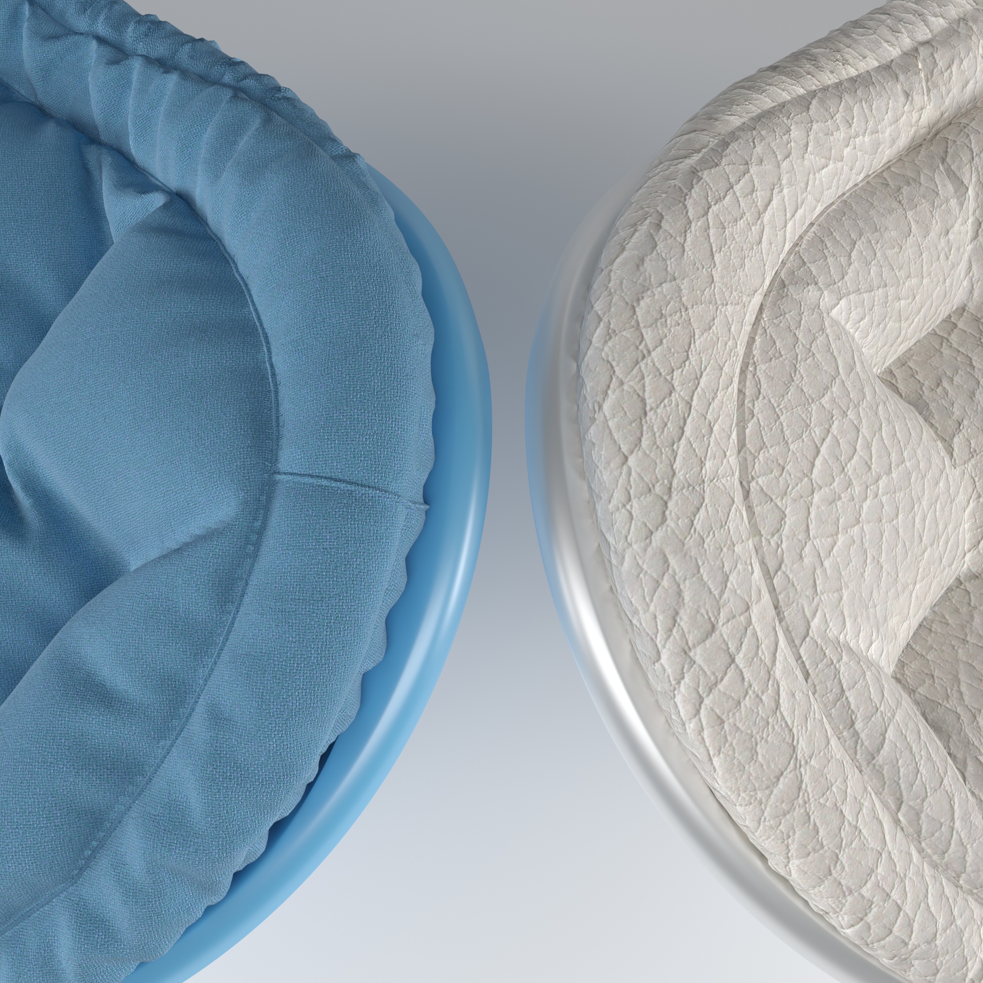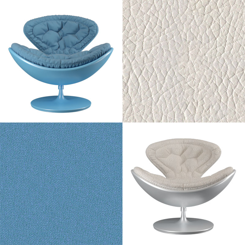 • два вида обивки: тканевая обивка из флиса насышенного голубого цвета и кожа кремового цвета