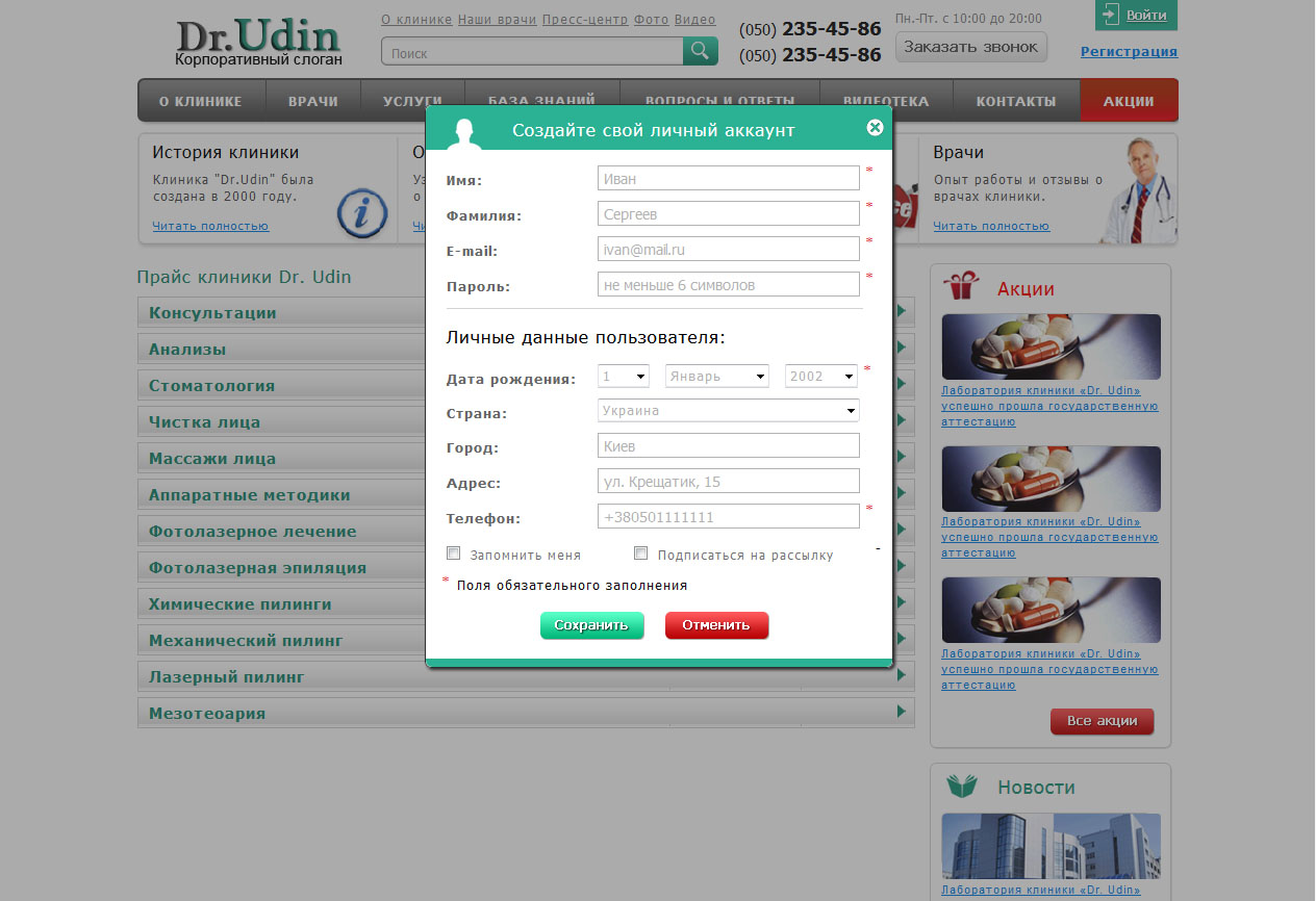 Сайт для клиники "Dr. Udin"